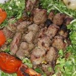 شيش طاووق مع بطاطا وسلطة وحمض