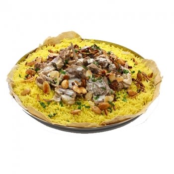 منسف برياني 1 كيلو لحم مشفى مع 1.6 كيلو رز مع صلصة و كريم ثوم و مكسرات