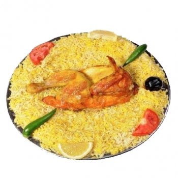 وجبة برياني دجاج نصف فروجه مع 750 غرام رز برياني مع صلصه و كريم ثوم