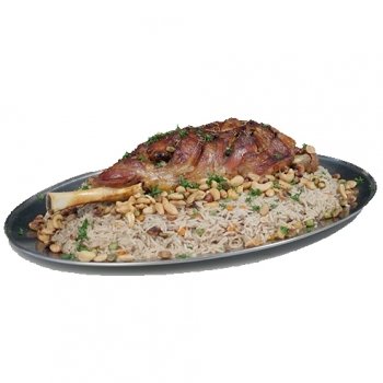 منسف مندي لحم 1 كيلو لحم بعضمو مع 1.6 كيلو رز مع صلصة و كريم ثوم و مكسرات