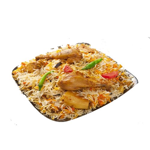 وجبة برياني دجاج نصف فروجه مع 750 غرام رز برياني مع صلصه و كريم ثوم
