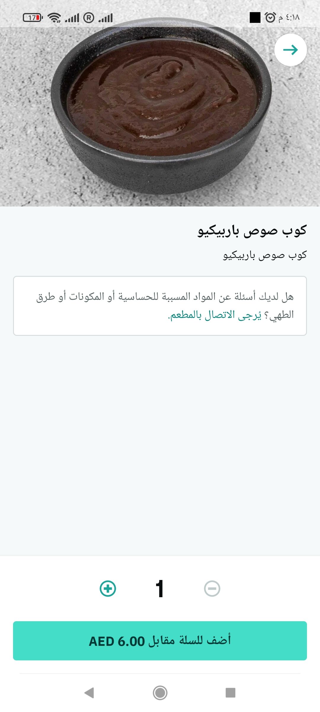 صلصلة البربكيو ( يمكنك اضافة صلصة البربكيو مع كافة الأصناف)