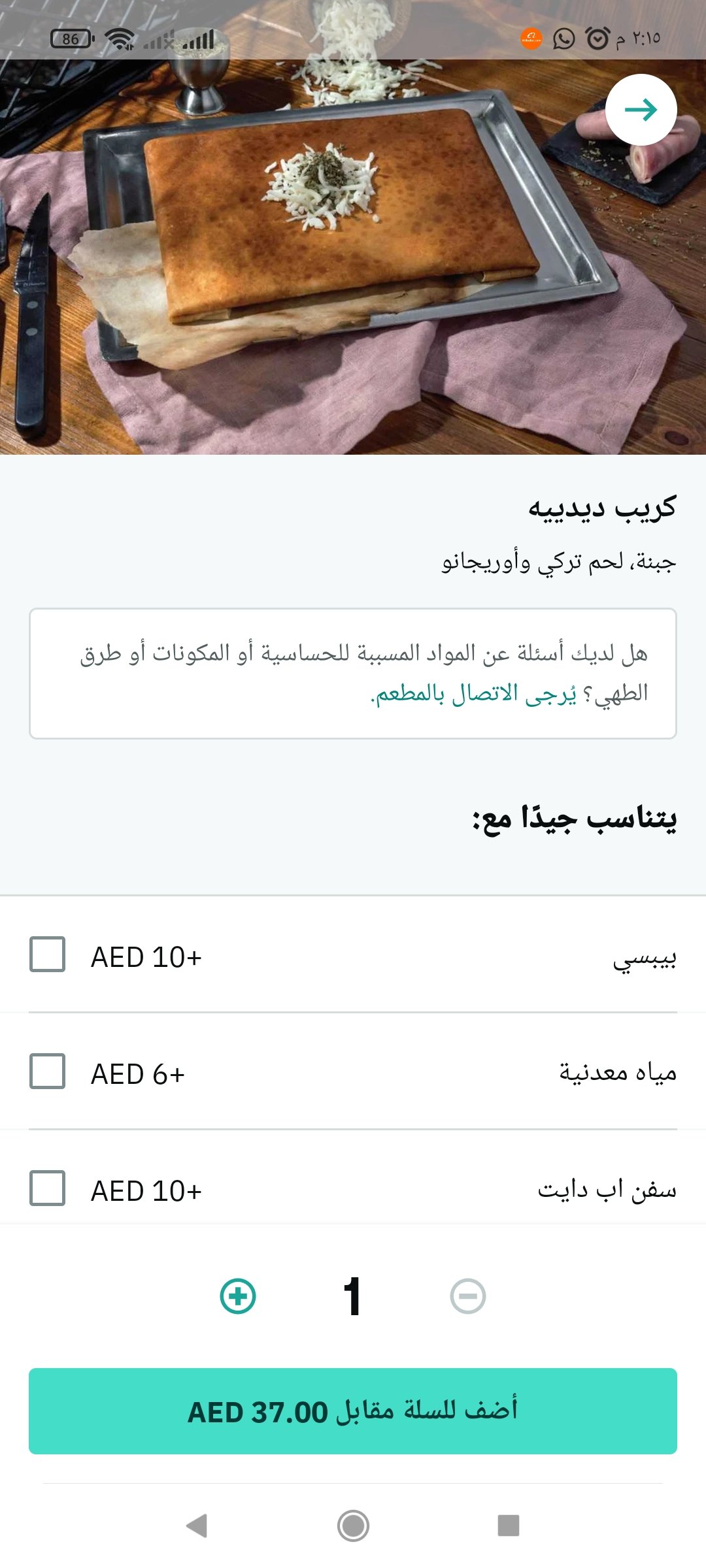عجينة كريب+ شوكولا + جبنة قشقوان
